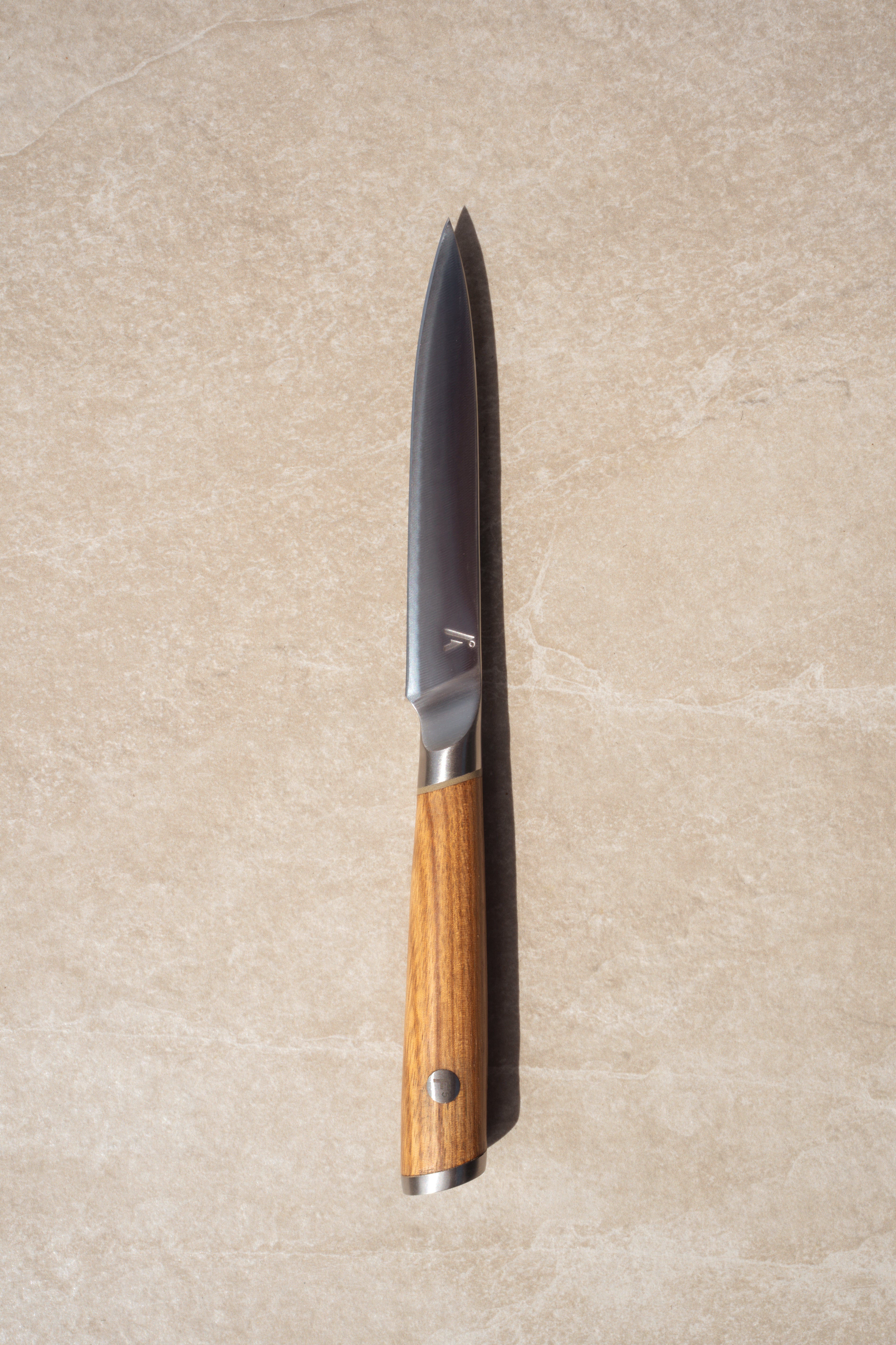 Thanks to the premium steel used in ANGLD knives, our blades retain their edge 2–4 times longer than standard stainless steel knives. When the time eventually comes to refresh the blade, we recommend using a rolling sharpener. It is the easiest and most effective way to restore professional sharpness at home.
