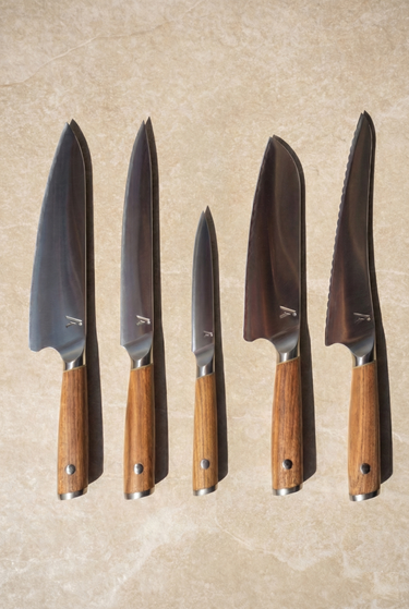 Thanks to the premium steel used in ANGLD knives, our blades retain their edge 2–4 times longer than standard stainless steel knives. When the time eventually comes to refresh the blade, we recommend using a rolling sharpener. It is the easiest and most effective way to restore professional sharpness at home.